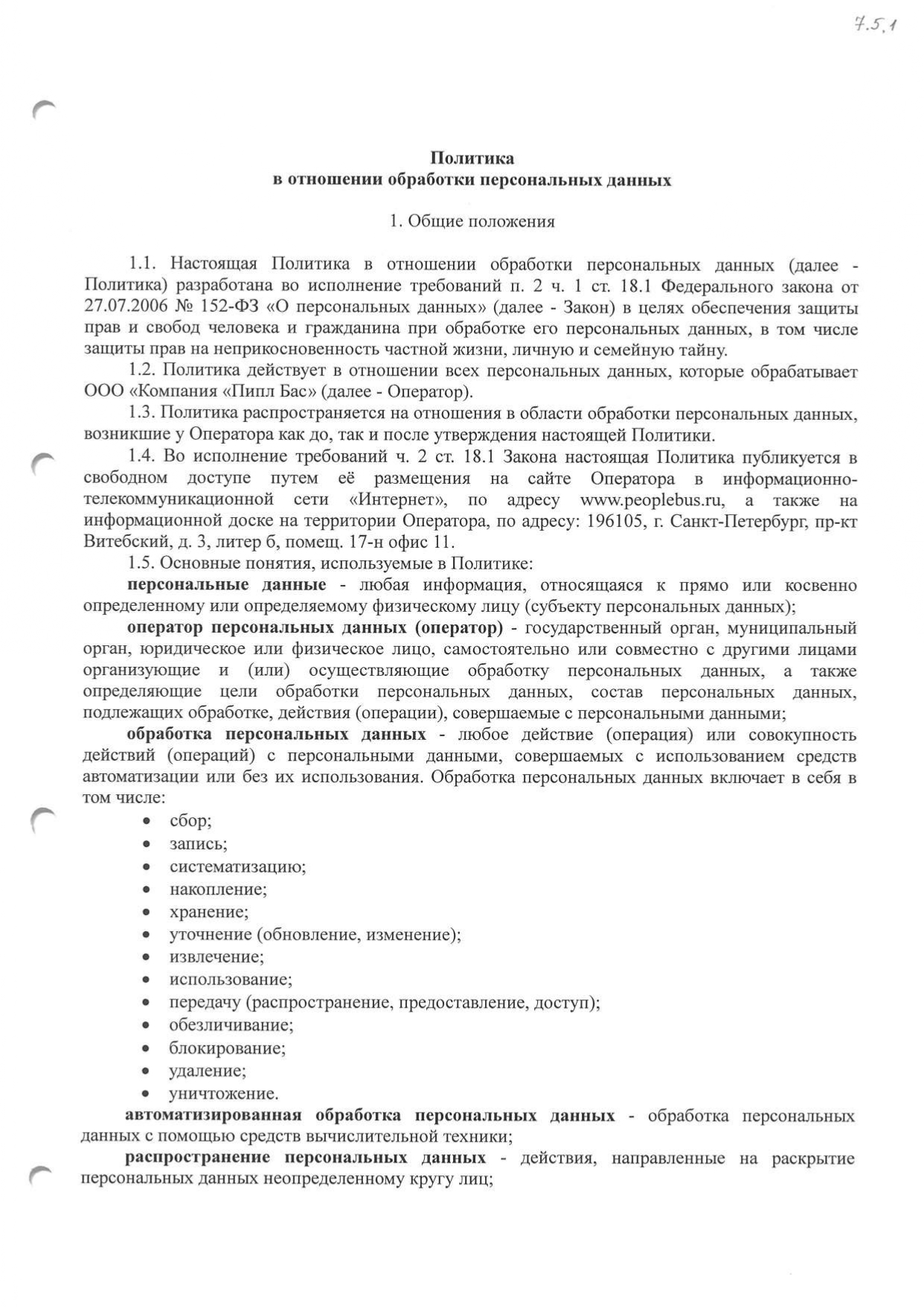 Политика в отношении обработки персональных данных